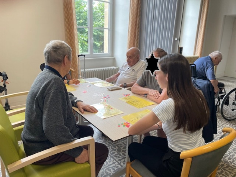 Une rencontre intergénérationnelle réussie entre les résidents et les jeunes du (Conseil des jeunes Citoyens) après-midi placé sous le signe du partage et de la convivialité qui a été un véritable succès, les je'unes ne voulaient plus partir.