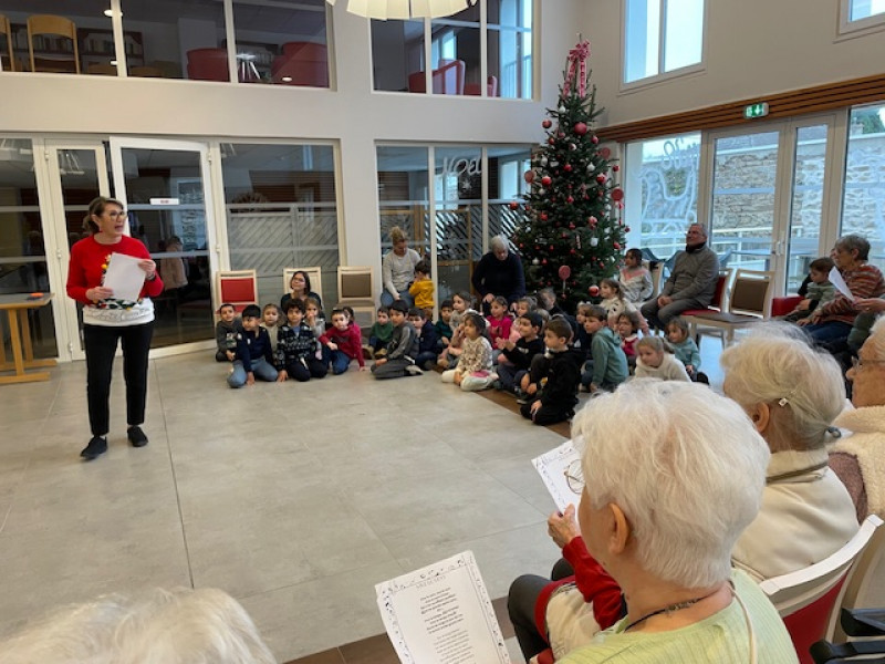 Une rencontre intergénérationnelle a eu lien au Parc Fleuri, où enfants et résidents ont partagé un moment musical en interprétant des chansons de Noël et d'autres morceaux du répertoire. Cette belle initiative s'est conclue par un goûter festif, pour le plus grand plaisir de tous.