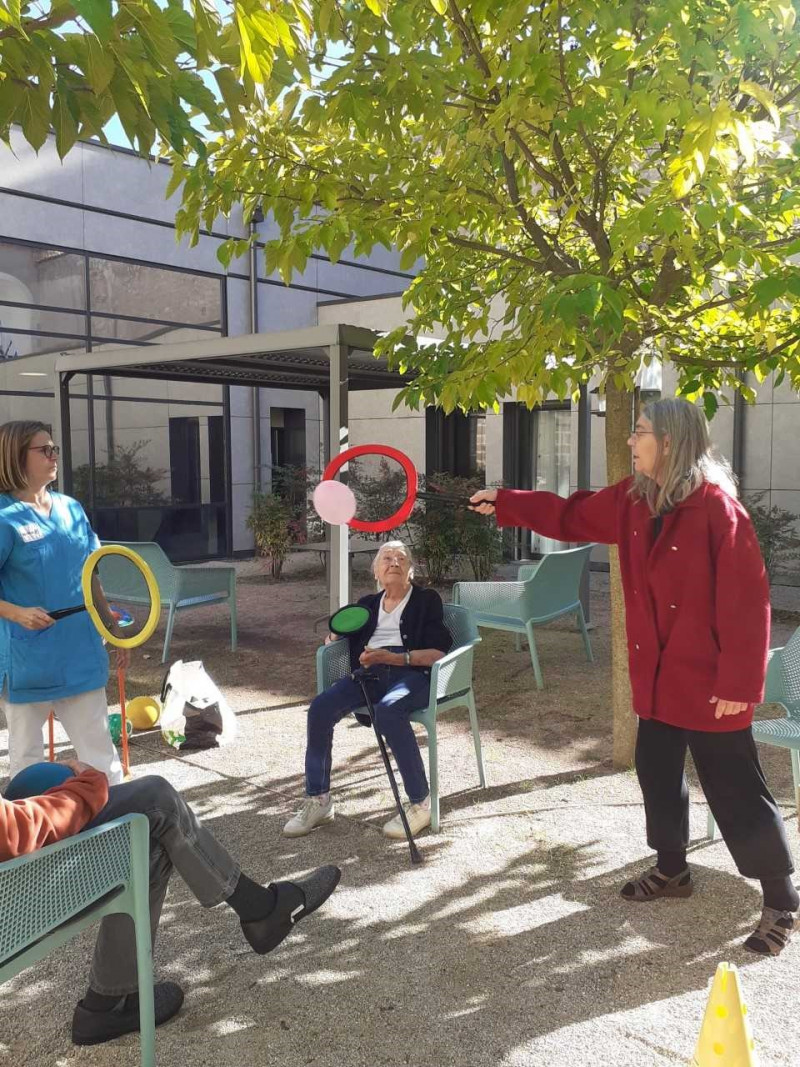 Petits jeux et mouvements tout en douceur pour un moment de détente à l’air pur. Les résidents apprécient ces instants de bien-être et de convivialité !