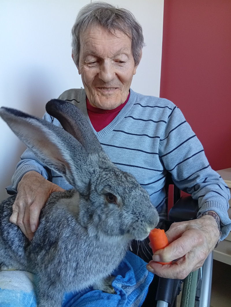 Les animaux viennent à la rencontre des résidents pour partager un moment de tendresse et de convivialité. De beaux instants remplis de douceur et de sourires !
